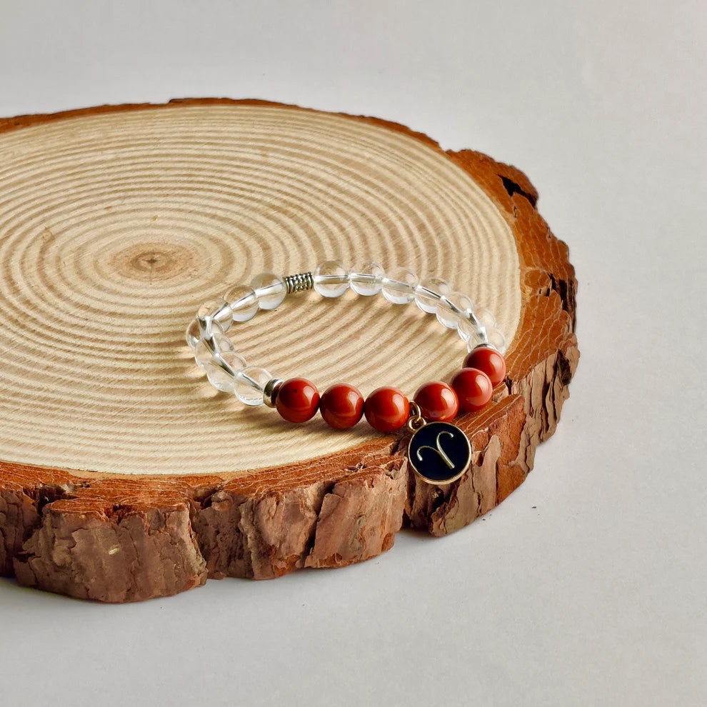 Aries, represented by the Ram, embody courage and passion. With a dynamic and energetic nature, Aries charge forward fearlessly in pursuit of their goals. Our handmade Courageous Band with certified Red Jasper Stones and Clear Quartz is specially designed for Aries. Red Jasper enhances vitality and endurance, empowering Aries to overcome challenges with resilience. Clear Quartz, known as the master healer, amplifies energy and intention, offering clarity and spiritual connection, guiding Aries on their journey towards success and well-being.