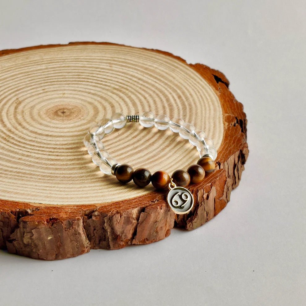 Cancerians, symbolized by the Crab, are known for their sensitivity, intuition, and nurturing qualities. Our handmade tender band, tailored specifically for Cancerians, features certified Tiger Eye and Clear Quartz stones. Tiger Eye is a stone of protection and confidence, instilling inner strength and stability. Clear Quartz, known as the master healer, amplifies the energies of other crystals and brings clarity and balance to the wearer.