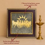 Amulyah 7 Horses on Raw Pyrite Frame is designed to attract career growth, success, and prosperity. The seven horses of Surya Dev symbolize speed, power, and victory supporting forward movement and clearing obstacles in professional life.