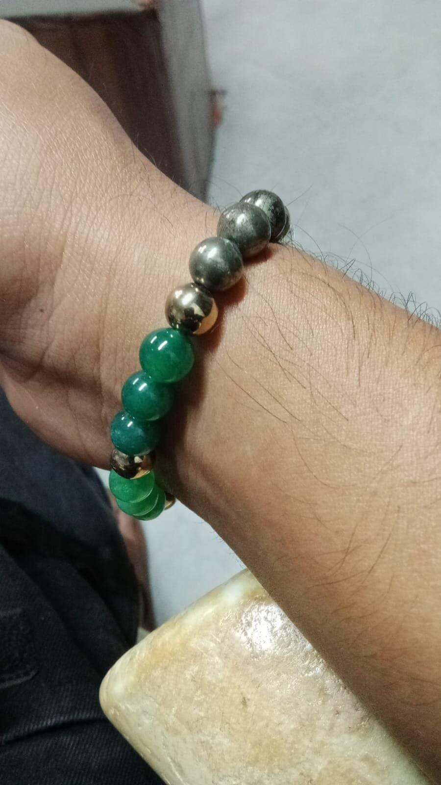 Dhan Prapti Bracelet: Made with Green Jade, Aventurine, Tiger Eye, Citrine, Clear Quartz, and Pyrite to enhance confidence, focus, and financial opportunities.