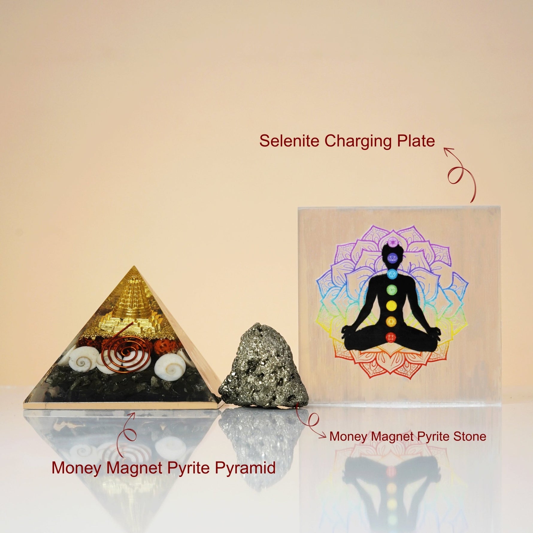 1) Money Magnet Pyrite Pyramid, the ultimate tool for manifesting wealth and prosperity.This meticulously crafted pyramid combines the powerful energies of :-