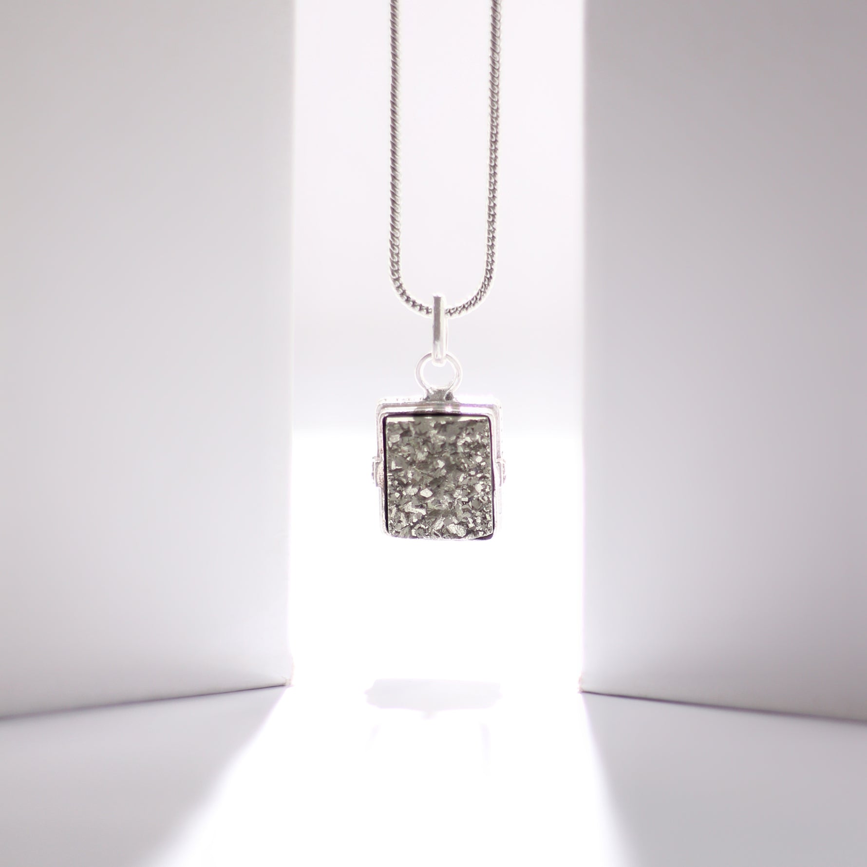 This pyrite pendant, set in genuine silver, is a powerful tool for attracting abundance and prosperity.